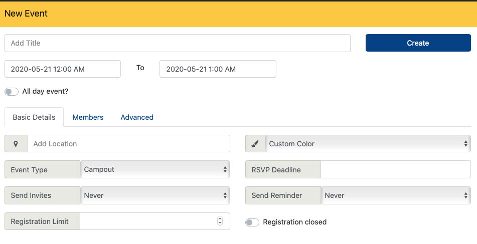 I do not actually see that display. This is what I see for both my Pack and Troop accounts when creating an event.